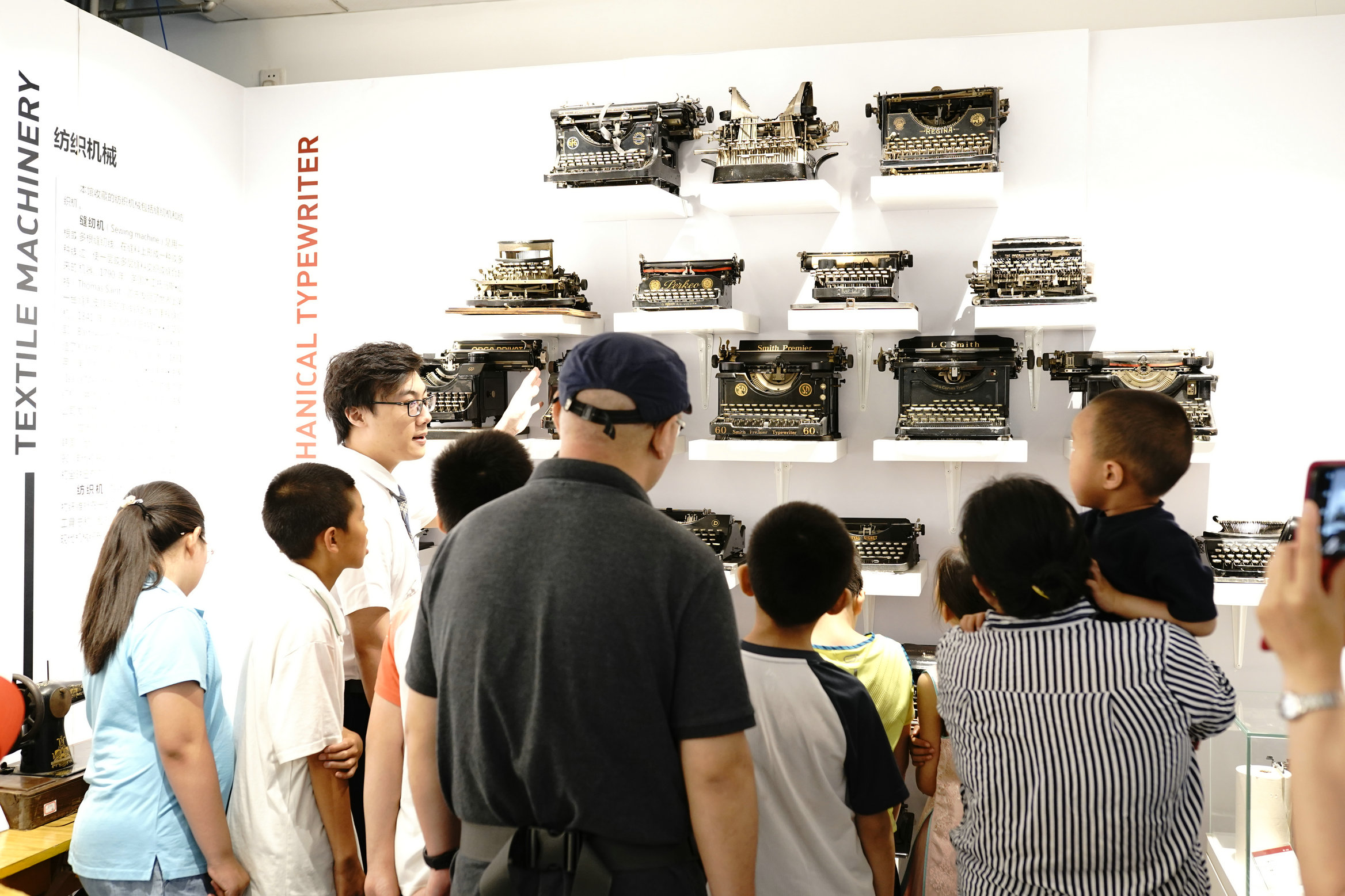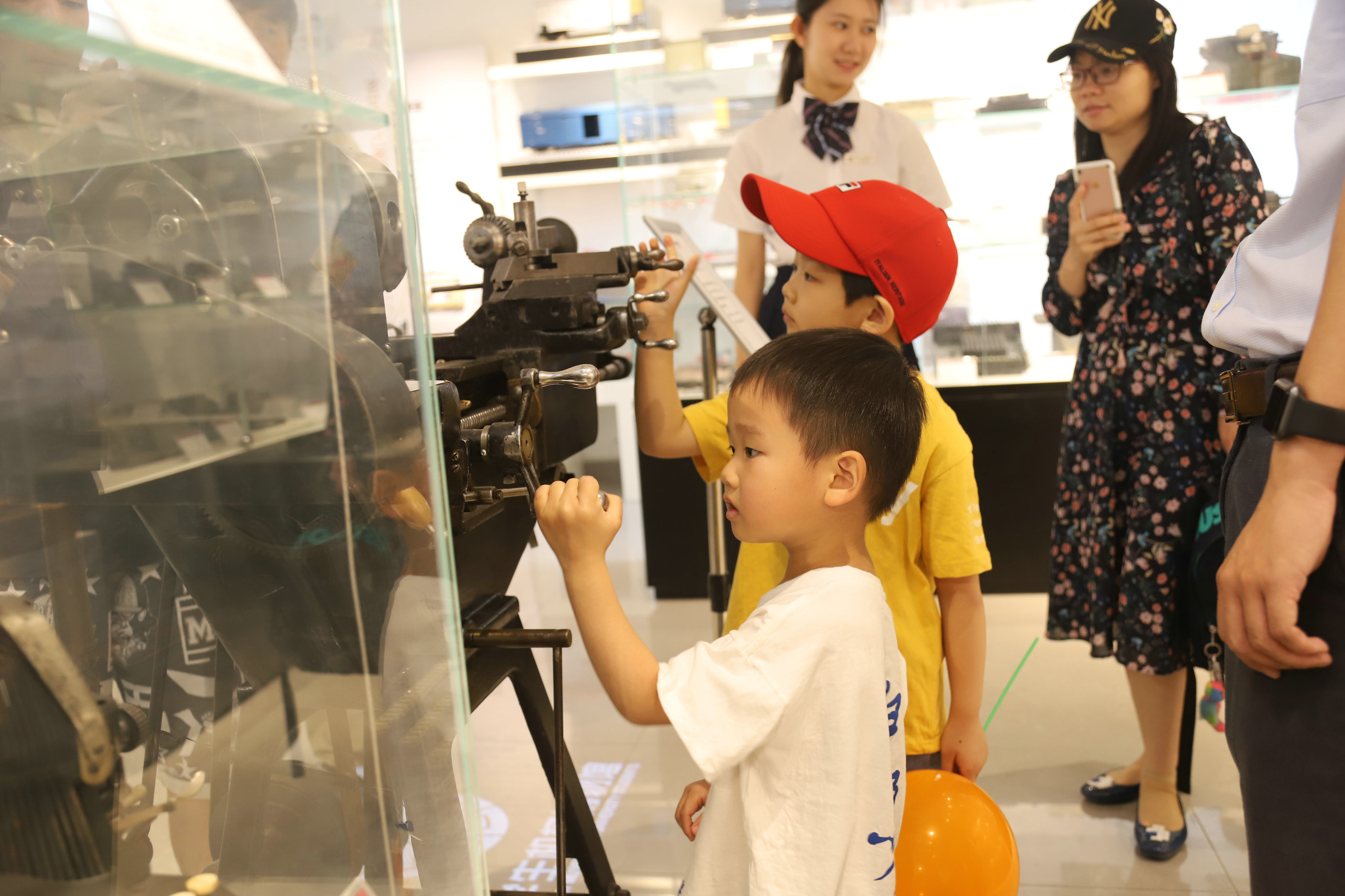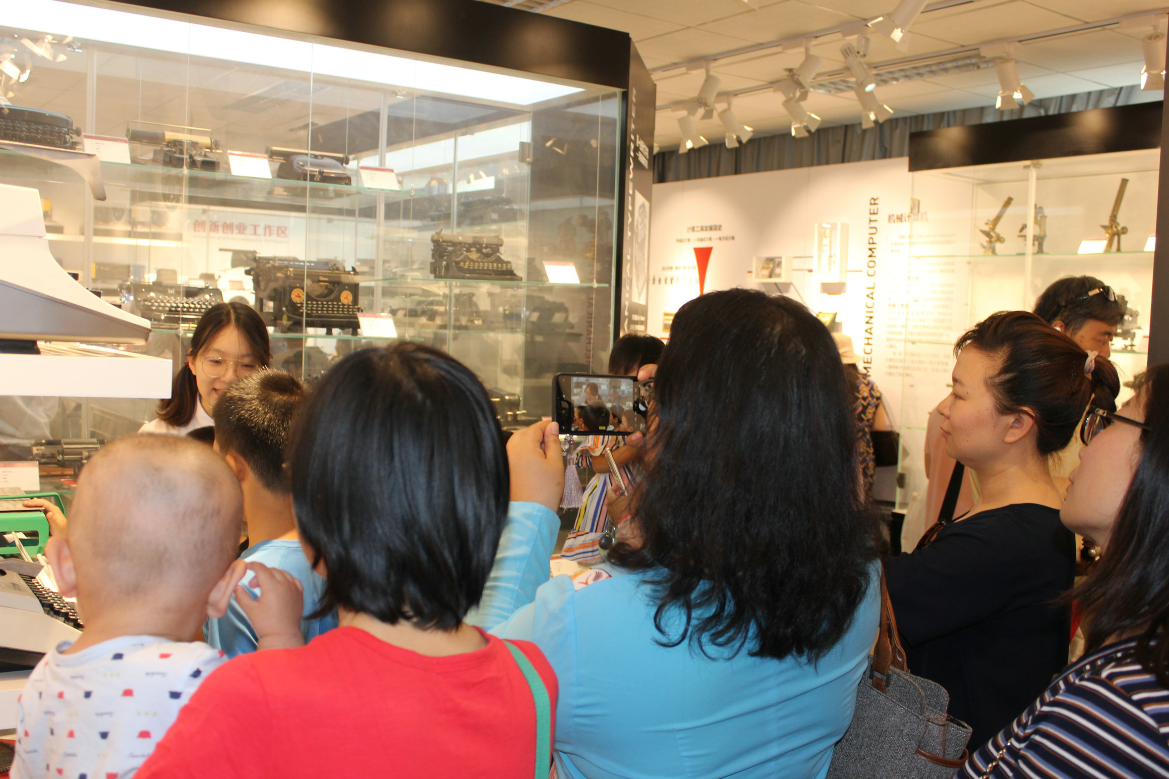 一进门,小朋友们就被展台上各式各样的打字机深深吸引了,这是怎么工作的呢?快来听听老员工志愿者敖嘉姐姐是怎样介绍的吧。