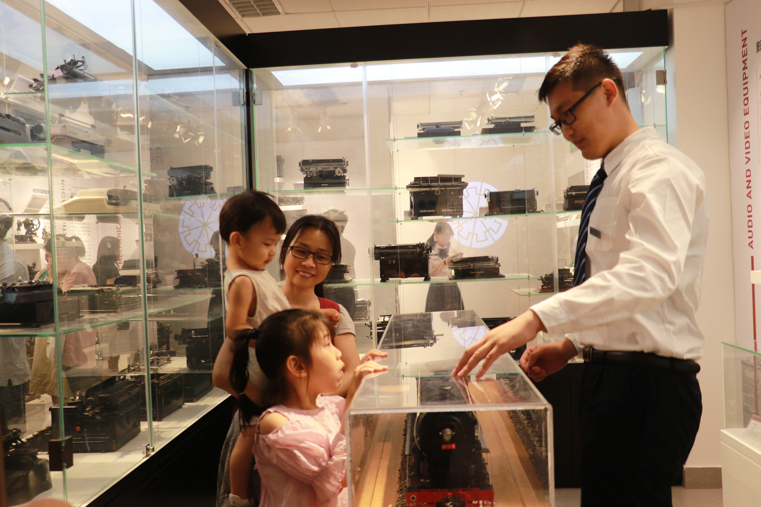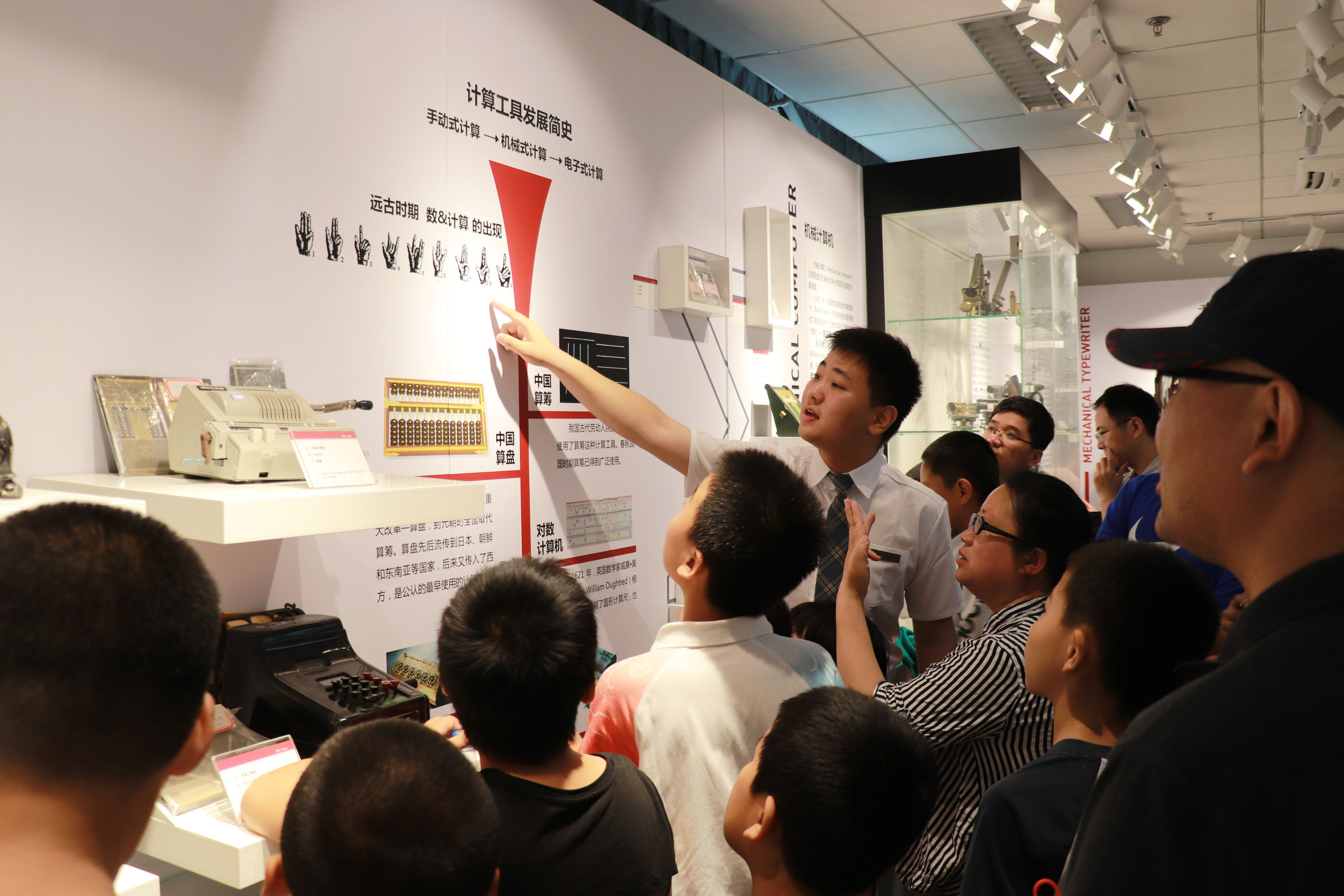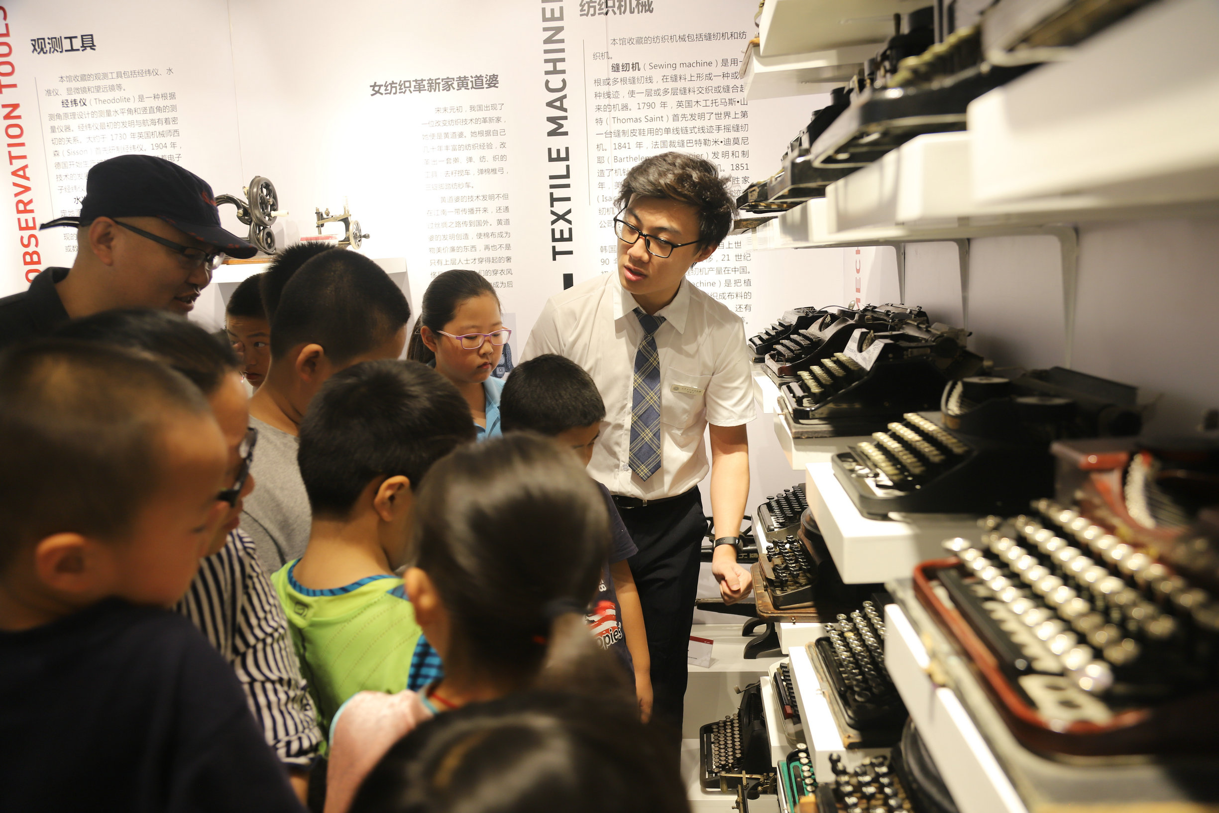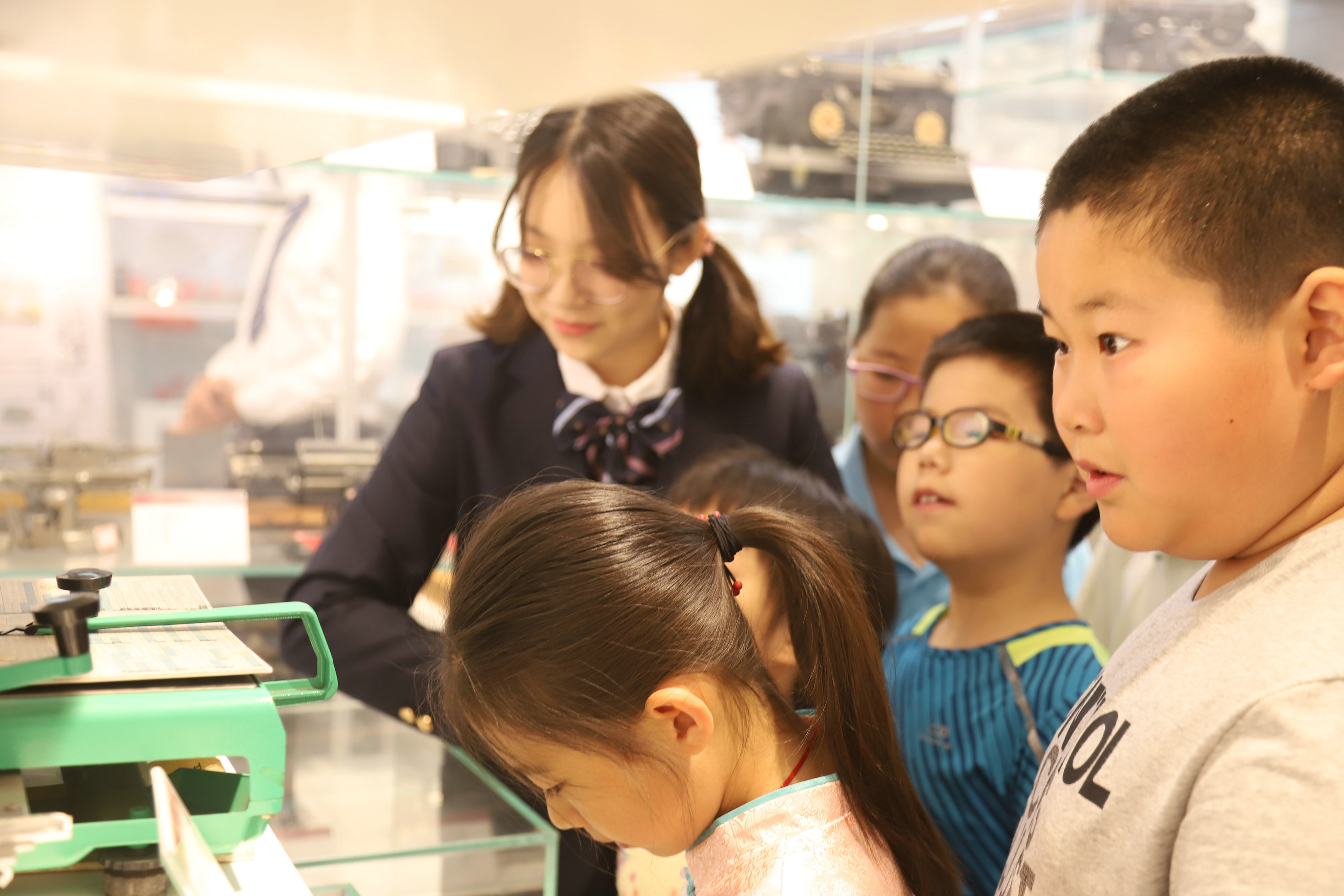 一进门,小朋友们就被展台上各式各样的打字机深深吸引了,这是怎么工作的呢?快来听听老员工志愿者敖嘉姐姐是怎样介绍的吧。
