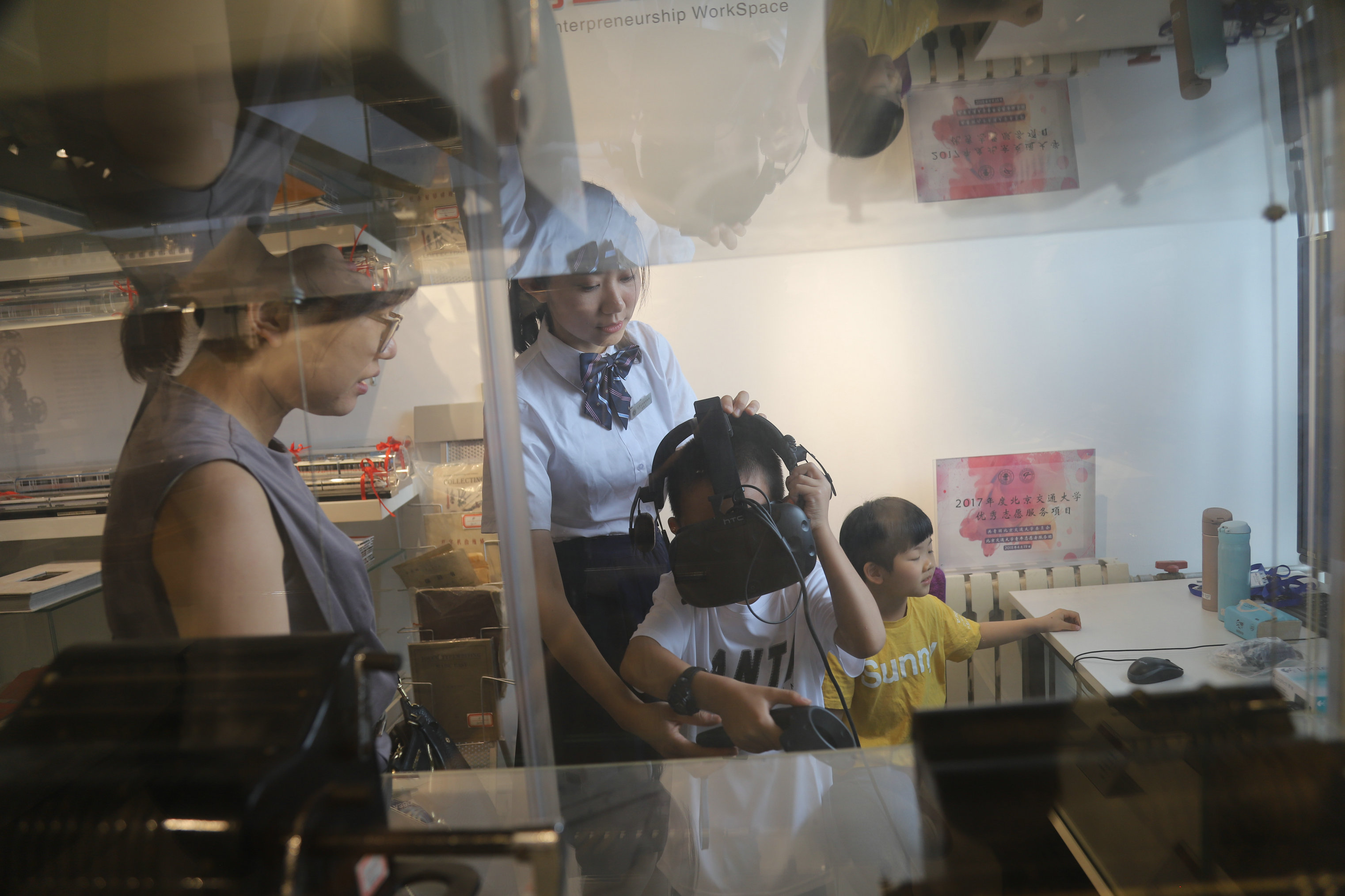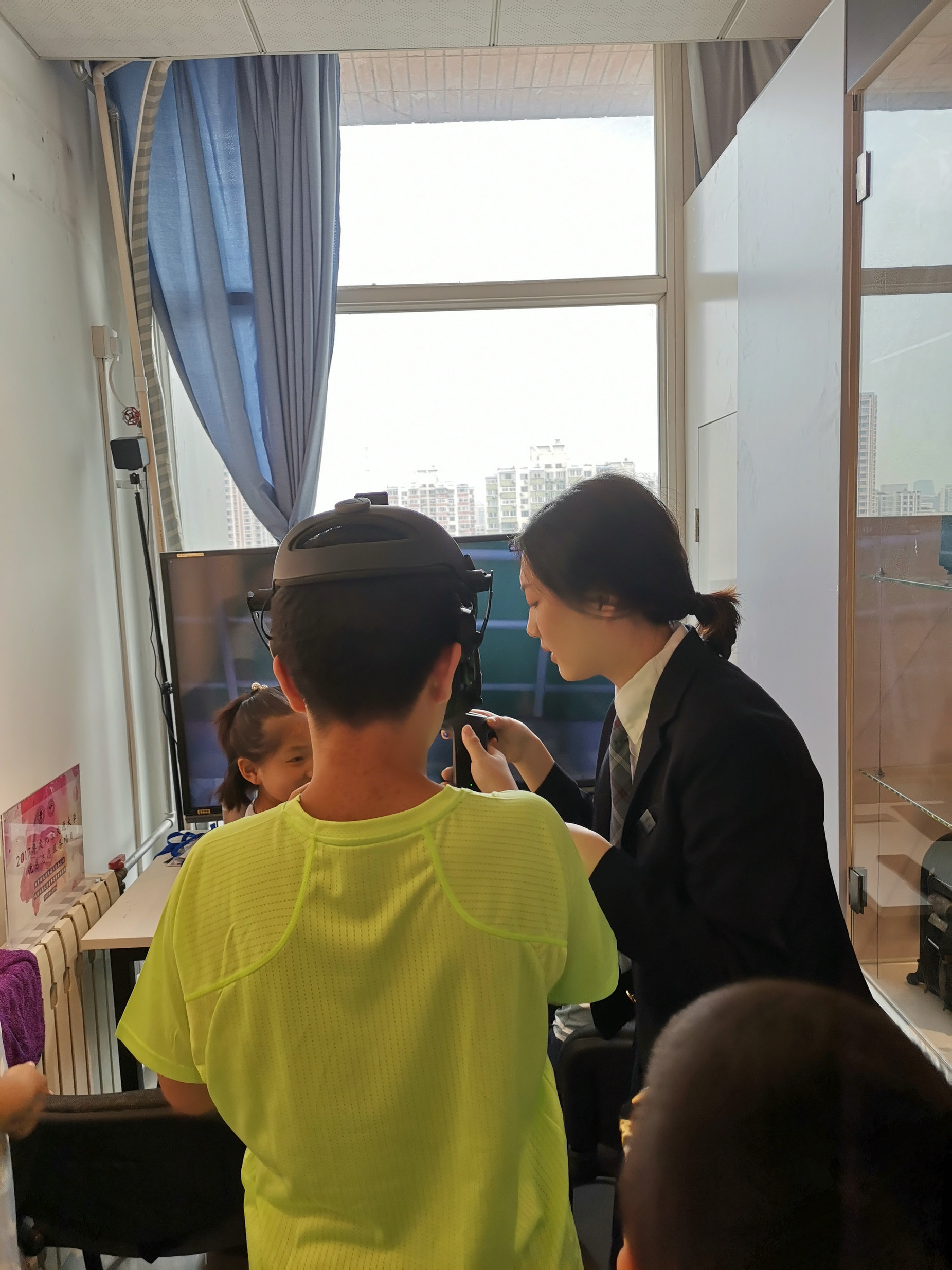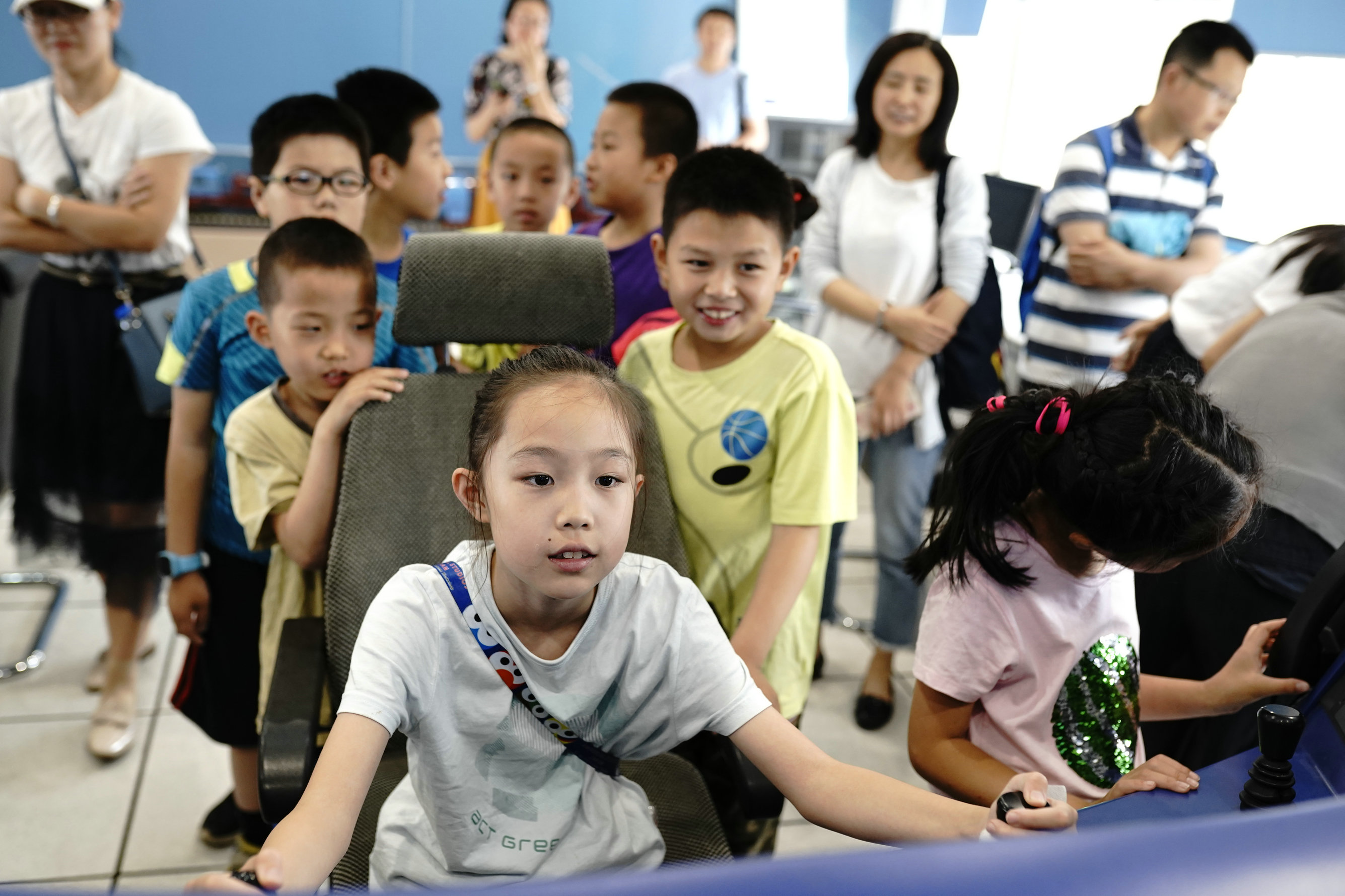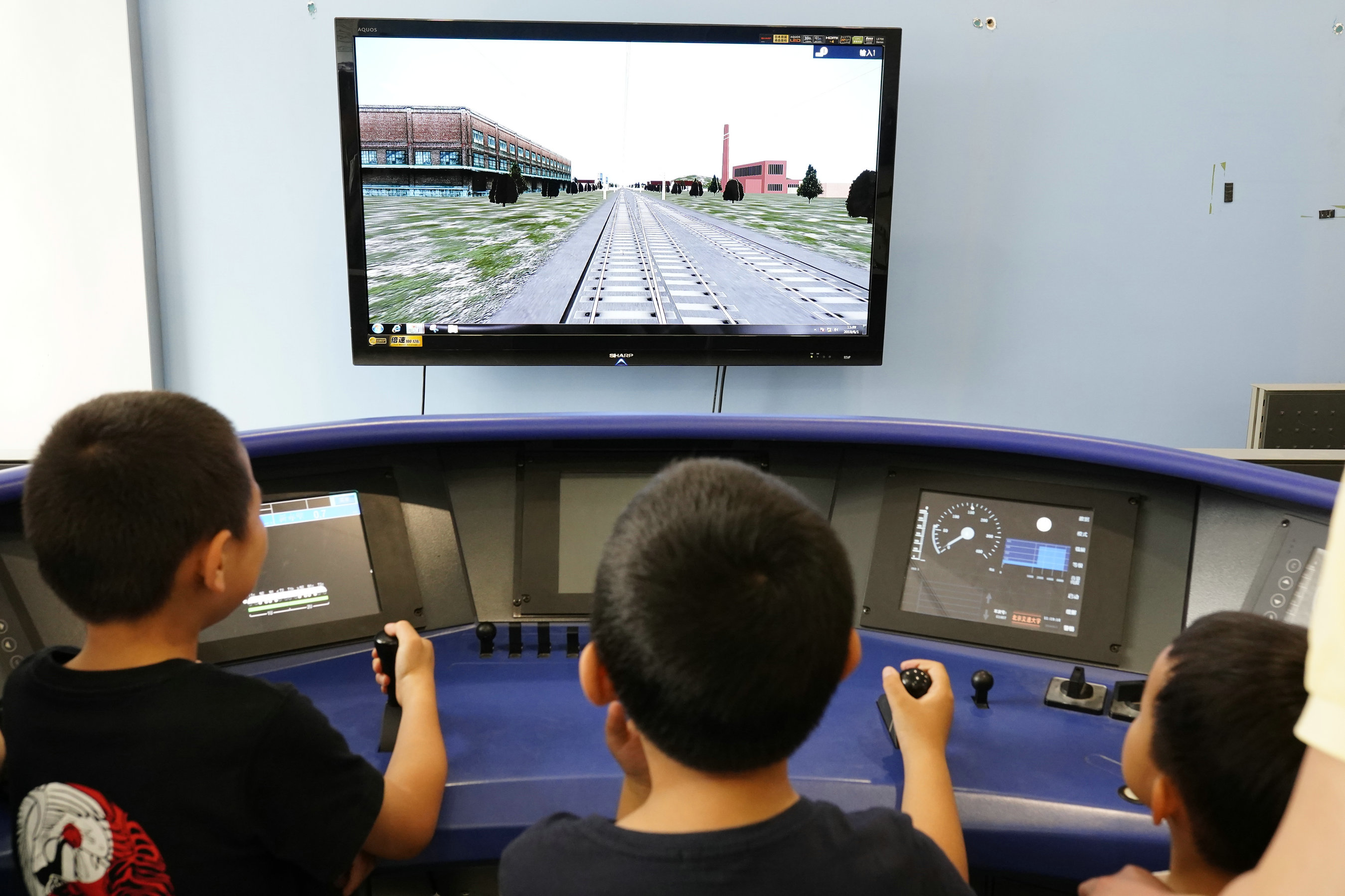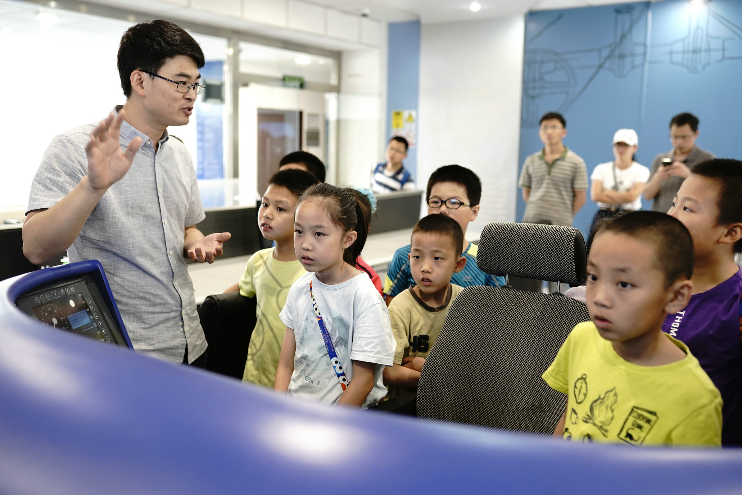 在六层,有一大批小伙伴们正在高波老师的带领下体验如何开火车呢?并记住了高铁的最高速度。