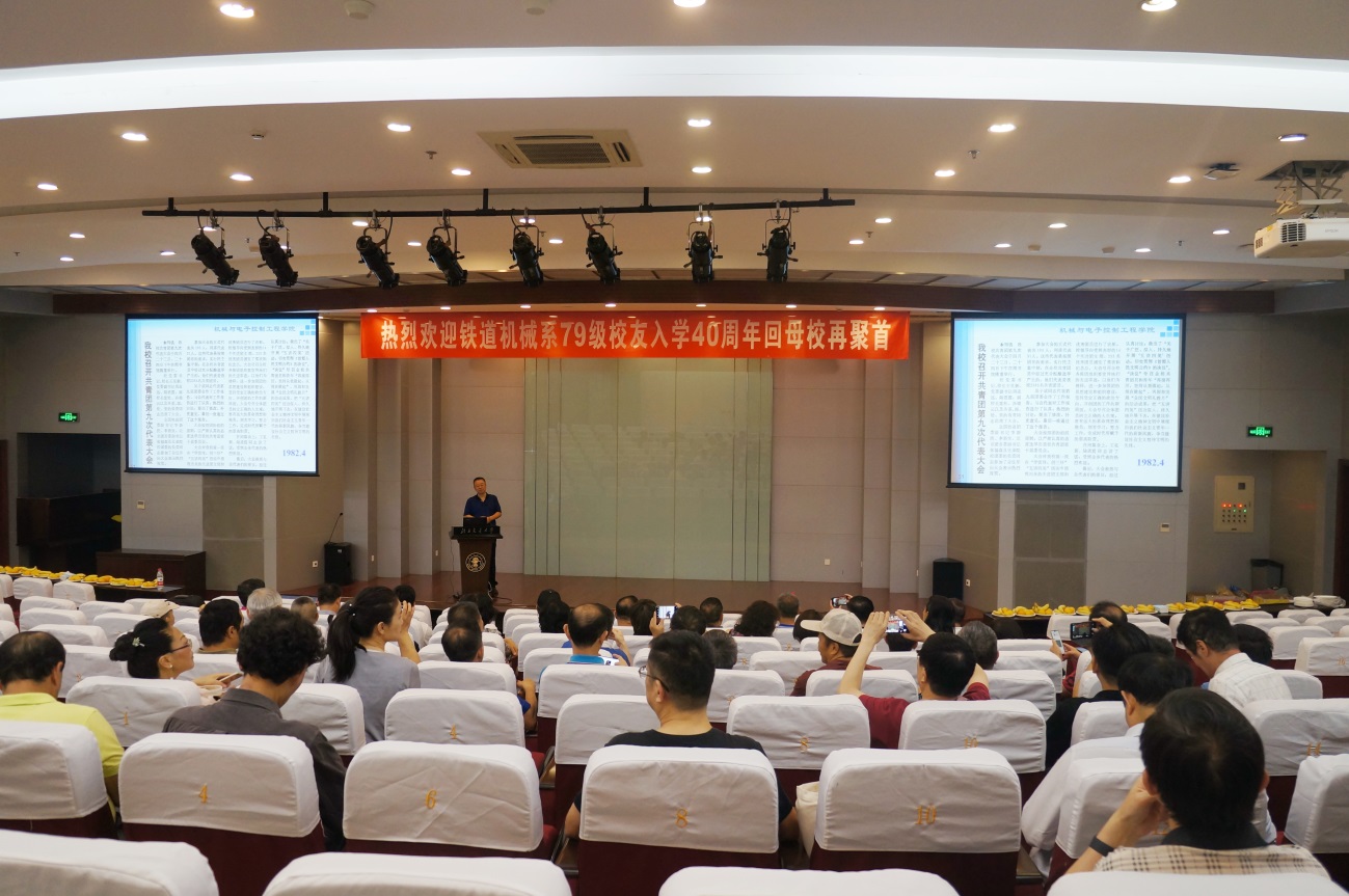上午10点左右,员工们相聚机械楼二层,报到处前一片欢声笑语,同学们互相握手拥抱,气氛浓厚。公司为每一名回来的员工精心准备了报到材料,同时,员工自发设计制作了纪念品。员工们在机械工程楼二层报告厅召开铁道机械系79级员工入学40周年“共话当年”主题座谈会,79级员工、公司党委书记杜永平精心制作了回忆ppt,员工们共同深情回顾了难忘的校园时光和奋斗历程。