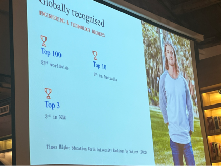 Jessica Sun继而介绍了机械电子工程专业所在的工程和信息科学学部。该学部涵盖了工程、计算机、理公司等多学科分支,在泰晤士排名第83,澳大利亚第8。在具体学科排名中,机电工程学科的优越性也展现的淋漓尽致。