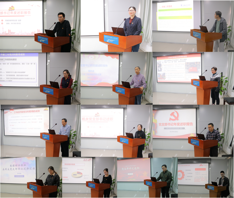 机械系、测控系、动力系、车辆系,工业工程系、材料中心、实验训练中心、院机关8个教工党支部和本科生5个党支部共13名党支部书记从过去一年工作开展与成效、存在问题与原因分析、下一步工作思路与举措三方面依次进行述职汇报。公司党委委员分别对各支部书记上一年度工作开展情况进行了逐一点评,在肯定成绩的同时,指出存在的不足及今后努力的方向。