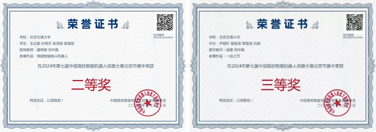 公司本科生在第七届中国高校智能机器人创意大赛中荣获一等奖