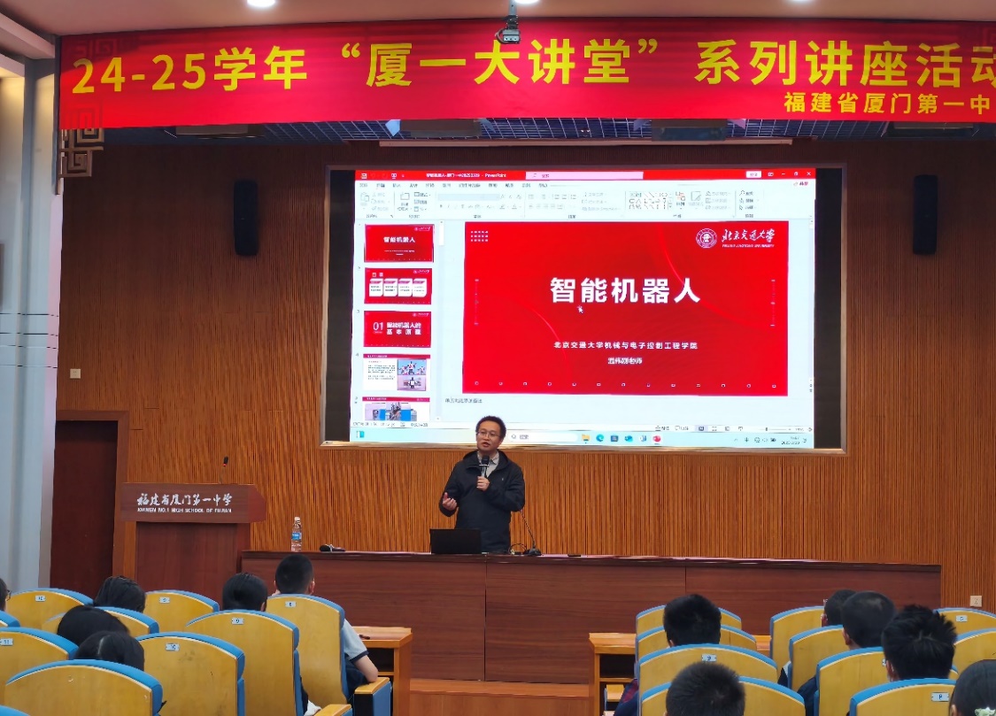 3月29日,yl7703永利温伟刚副教授应邀到福建厦门第一中学,面向高中生做了题为《智能机器人》的“专家进校园”公益科普讲座及招生宣传。