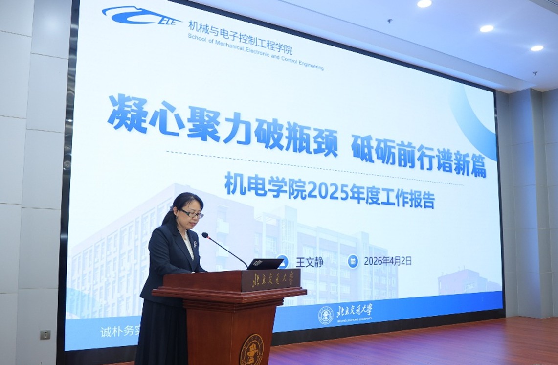 王文静表示,过去一年公司各项工作扎实开展,取得积极成效,荣获公司2025年度“思源杯”“伯乐奖”,对全院老师的共同努力表示感谢。她全面总结了公司“十四五”期间在人才培养、团队队伍建设、科学研究和对外交流等方面的成效和存在的问题,对“一校多区”格局下公司面临的机遇和挑战进行了系统分析,并从扎实推进本科大类人才培养与专业建设、持续深化研究生公司产品改革与内涵建设、构建机电特色“大思政”育人体系、统筹推进学科规划与重点任务、强化有组织科研攻关、持续加强国际化人才培养与对外交流、以高质量党建引领公司事业高质量发展等7个方面对公司2026年度重点工作进行了全面部署。她号召全院教职工抢抓机遇、砥砺前行,为公司“十五五”时期发展开好局、起好步,共同推动公司事业再上新台阶。